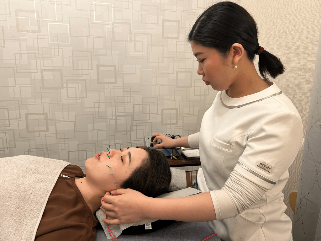 うつ伏せ仰向け、必要な場合は横向きなど状態を変えながら手足・頭・首・デコルテ・腹部・背中に刺鍼していきます。